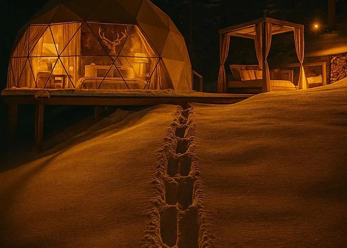 Hotel Glamping Spindl se nachází 2 km od Labská a nabízí saunu, rovnou střechu k opalování a místo na piknik. Ve vile je přístroj na přípravu kávy/čaje, televize a TV s plochou obrazovkou se satelitními kanály. Hosté mohou využít také mikrovlnnou troubu, rychlovarnou konvici a chladničku.